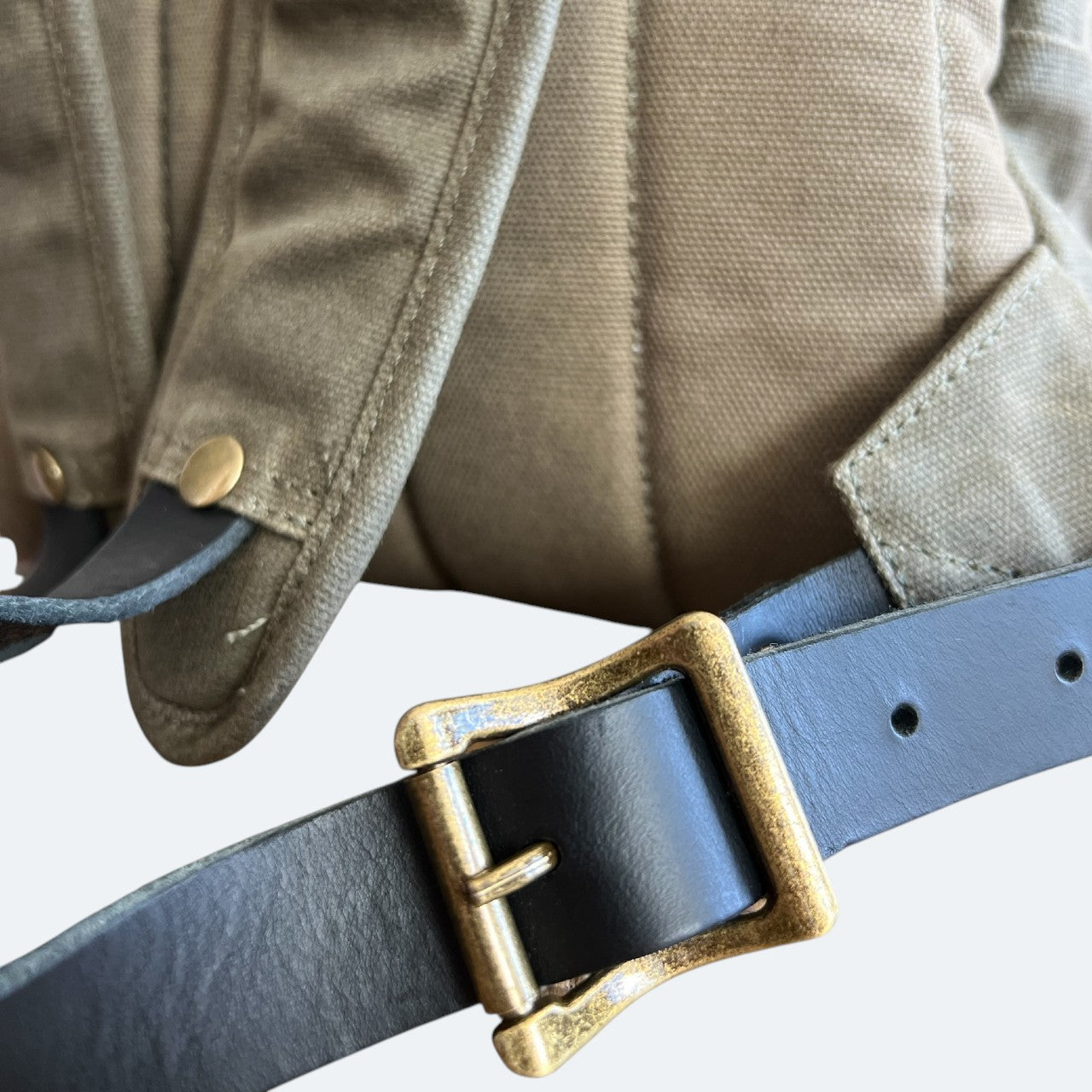 Mochila unisex con un diseño moderno y funcional, confeccionada en lona encerada y cuero de alta calidad. Ideal para el uso diario o viajes, combina resistencia, estilo y practicidad. Cuenta con un compartimento interior acolchado para computador, y su forro de lona la hace cómoda y duradera.