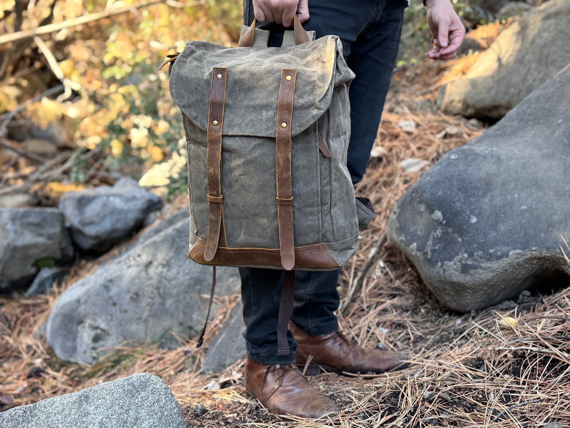 Mochila de lona impermeable con un diseño vintage y elegante. Incorpora forro de lino, correa de cadena y soporte fisiológico para mayor comodidad. Ideal para viajes, la escuela o actividades al aire libre, combina funcionalidad y estilo en cada detalle.